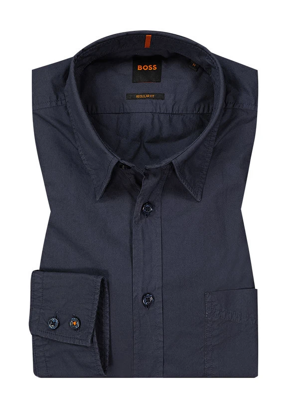 BOSS ORANGE Hemd, Regular Fit, Baumwolle, Marine