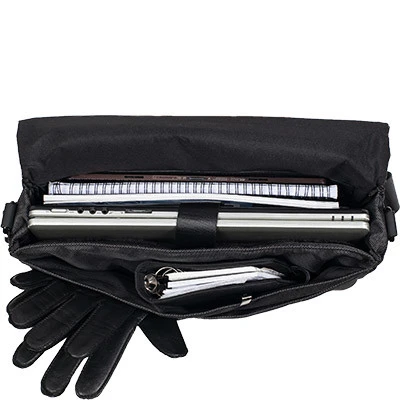 gepolstertem Laptopfach und Fleece-Futter, mit Klettriegel zu sichern. - Mit drei Stiftelaschen und einem