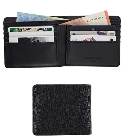 Aus robustem Material ist diese Geldbörse ein komfortables Accessoire – mit vielen Steckfächern im Scheckkartenformat und zwei Scheinfächern überzeugt sie in handlichem Format. Die körnig geprägte Außenseite mit goldfarbigem Logo Print setzt stylische Akzente.