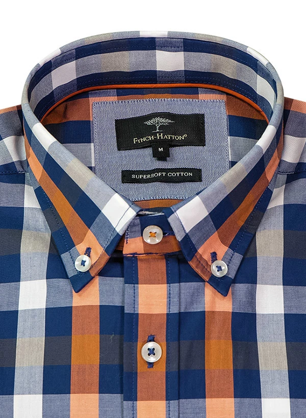 FYNCH-HATTON Hemd, Baumwolle, Marine-orange Kariert