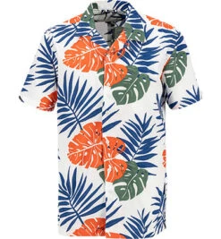 North Sails Kurzarmhemd, Baumwolle, Weiß-orange Gemustert