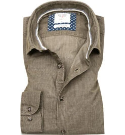 Dieses Hemd mit lässiger Austrahlung ist aus Feincord mit gewollten Farbdifferenzen gefertigt. Körpernah geschnitten wird die schlanke Silhouette betont. Ein schmales Kontrastband am inneren Kragensteg setzt einen modernen Akzent.