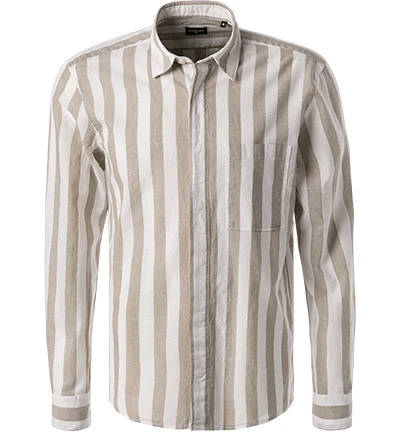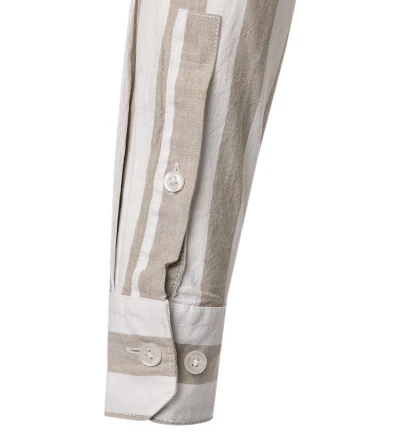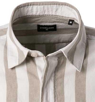 Strellson Hemd, Baumwoll-Leinen, Taupe-weiß Gestreift